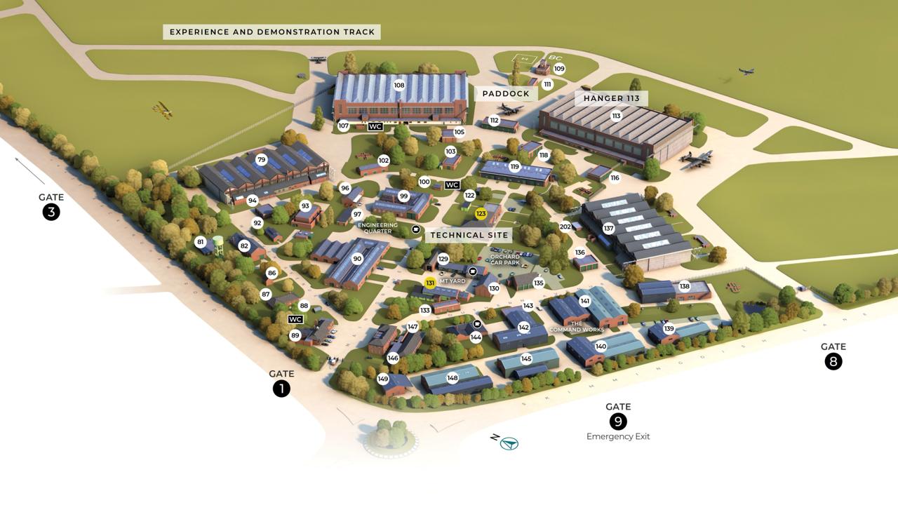 On arrival, please enter via Gate 8 and follow the signs for MTech Lite to the grass area in front of Hanger 113, (please see attached site map for reference).